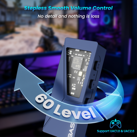 ๐๐จ๐ฎ๐ซ ๐๐๐ฆ๐ข๐ง๐ ๐๐ฅ๐ฅ๐ฒ: Take full control of your audio with a precise 60-step volume adjustment that operates independently of your source device. This allows you to push beyond the default volume limit while maintaining clear, uncompressed soundโresolving issues like poor distance perception, background noise, and static. Easily switch between UAC 1.0 and 2.0 modes for broad compatibility with popular gaming consoles such as Switch and PS5